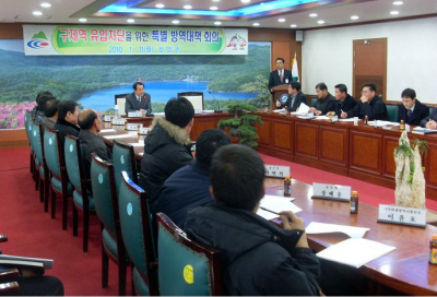 <p class="HStyle0" style="LINE-HEIGHT: 180%"><span style="FONT-WEIGHT: bold; FONT-SIZE: 14pt; LINE-HEIGHT: 180%; FONT-FAMILY: 한양신명조,한컴돋움"><span style="FONT-SIZE: small; FONT-FAMILY: Arial">청양군 구제역 긴급방역 조치 돌입</span></span></p> <p class="HStyle0" style="LINE-HEIGHT: 180%"><span style="FONT-SIZE: small"><span style="FONT-FAMILY: Arial"><span style="FONT-WEIGHT: bold; FONT-SIZE: 14pt; LINE-HEIGHT: 180%; FONT-FAMILY: 한양신명조,한컴돋움">-24시 </span><span style="FONT-WEIGHT: bold; FONT-SIZE: 14pt; LINE-HEIGHT: 180%; FONT-FAMILY: 한양신명조,한컴돋움">구제역특별상황실 설치 운영</span></span></span></p> <p class="HStyle0" style="LINE-HEIGHT: 180%"> </p> <p class="HStyle0" style="LINE-HEIGHT: 180%"><span style="FONT-SIZE: 14pt; LINE-HEIGHT: 180%; FONT-FAMILY: 한양신명조,한컴돋움"><span style="FONT-SIZE: small; FONT-FAMILY: Arial">청양군은 경기도 포천시 젖소 구제역 발생에 따라 청양군 유입을 차단하고자 지난 11일 이명복 청양부군수 주재로 읍․면 축산관계관 특별방역대책 회의를 개최했다. </span></span></p> <p class="HStyle0" style="LINE-HEIGHT: 180%"><span style="FONT-SIZE: 14pt; LINE-HEIGHT: 180%; FONT-FAMILY: 한양신명조,한컴돋움"><span style="FONT-SIZE: small; FONT-FAMILY: Arial">경기도 포천시에 발병한 구제역은 8년 전 청양군 인근 홍성에서 발병했지만 축산농가와 지자체가 자발적으로 방역을 실시해 질병 전파를 성공적으로 차단시켜 청정청양을 유지한 경험이 있다.</span></span></p> <p class="HStyle0" style="LINE-HEIGHT: 180%"><span style="FONT-SIZE: 14pt; LINE-HEIGHT: 180%; FONT-FAMILY: 한양신명조,한컴돋움"><span style="FONT-SIZE: small; FONT-FAMILY: Arial">청양군에서는 경기도 포천시 젖소 구제역 발생 통지를 받은 지난 7일 농림식품과에 기존의 조류인플루엔자 특별상황실을 확대해 24시간 상황유지하는 ‘구제역특별상황실’로 개편․조치하는 등 발빠른 조치에 나섰다. 또한 공동방제단을 동원해 대대적인 소독활동을 실시하고 농가 홍보를 병행했다. 특히 동절기에 효과적인 소독활동을 위해 생석회를 60톤, 소독약 3,061kg을 확보해 농가에 공급하고 군, 축협에 보유중인 소독차량을 이용해 가축시장, 종돈장 및 가축사육시설 입구 등 질병 발생우려가 높은 지역을 수시로 소독 조치할 계획이다.</span></span></p> <p class="HStyle0" style="LINE-HEIGHT: 180%"><span style="FONT-SIZE: 14pt; LINE-HEIGHT: 180%; FONT-FAMILY: 한양신명조,한컴돋움"><span style="FONT-SIZE: small; FONT-FAMILY: Arial">군 담당자는 구제역, 조류인플루엔자와 같은 전파가 강한 전염병도 축산 농가의 자발적인 소독만이 최선의 길이라고 밝혔다. 또한 △농장주의 농장내 출입시 신발 및 옷을 갈아 입거나 소독철저 △농장 진입차량 및 사람에 대한 소독철저, 입구 소독동파 등 점검 △중국산 건초, 톱밥 사용시 출처확인 △농가에 우제류 입식시 구입처를 사전확인(발생지역인근에서 구입삼가) △중국 등 구제역발생 지역 여행을 자제하고 부득이 방문이 필요한 경우 가축사육농장 출입은 삼가 △외국인 노동자 입․출국 후 농장출입시 소독철저 등을 강조했다. 특히 가축의 사료섭취량감소, 입․발굽․젖꼭지의 수포 발생 등 세심한 관찰이 필요하다며 이상 발생시 군에 신고(☏940-2393)할 것을 당부했다. </span></span></p> <p class="HStyle0"><span style="FONT-FAMILY: "한컴바탕""><br /><span style="FONT-SIZE: small"> </span></span></p> |