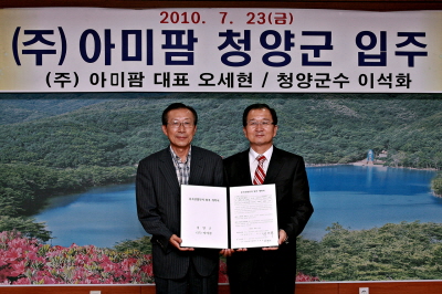 <p class="HStyle0" style="LINE-HEIGHT: 180%"><span style="FONT-WEIGHT: bold; FONT-SIZE: 14pt; LINE-HEIGHT: 180%; FONT-FAMILY: 한양신명조,한컴돋움"><span style="FONT-SIZE: small; FONT-FAMILY: Arial">청양군 민선 5기 들어 유망기업 유치 첫 성과!</span></span></p> <p class="HStyle0" style="LINE-HEIGHT: 180%"><span style="FONT-WEIGHT: bold; FONT-SIZE: 14pt; LINE-HEIGHT: 180%; FONT-FAMILY: 한양신명조,한컴돋움"><span style="FONT-SIZE: small; FONT-FAMILY: Arial">- 4세대 바이오 신물질 연구 제조기업 유치 성공, 친환경 농업 날개달아</span></span></p> <p class="HStyle0" style="LINE-HEIGHT: 180%"><span style="FONT-WEIGHT: bold; FONT-SIZE: 14pt; LINE-HEIGHT: 180%; FONT-FAMILY: 한양신명조,한컴돋움"><span style="FONT-SIZE: small; FONT-FAMILY: Arial">- (주)아미팜 30억원 투자 운곡산업단지 입주키로 </span></span></p> <p class="HStyle0" style="LINE-HEIGHT: 180%"><span style="FONT-SIZE: 14pt; LINE-HEIGHT: 180%; FONT-FAMILY: 한양신명조,한컴돋움"><span style="FONT-SIZE: small; FONT-FAMILY: Arial">청양군(군수 이석화)이 민선 5기 들어 ‘기업유치팀’ 설치 추진 등 유망기업유치에 총력을 기울이고 있는 가운데 첫 성과가 나왔다.</span></span></p> <p class="HStyle0" style="LINE-HEIGHT: 180%"><span style="FONT-SIZE: 14pt; LINE-HEIGHT: 180%; FONT-FAMILY: 한양신명조,한컴돋움"><span style="FONT-SIZE: small; FONT-FAMILY: Arial">군에 따르면 4세대 바이오 신물질 연구제조업체인 (주)아미팜(대표이사 오세현)과 청양군이 지난 23일 운곡산업단지 입주계약을 체결했다고 밝혔다. (주)아미팜은 충남개발공사에서 충청남도 특허기술을 상용화하여 친환경 고품질 아미노산의 생산 판매로 공익성과 수익성이라는 두 마리 토끼를 잡기 위해 지난 6월에 설립한 법인으로 올해에 30억원 투자와 35명의 고용을 창출할 계획이다. 올해 11월 가동을 시작해 내년도 매출액은 20억원을 목표로 하고 매년 매출액과 고용인원이 꾸준히 증가할 것으로 기대하고 있다. 오세현 대표이사는 농업용과 사료용 아미노산 시장규모가 지난해 3만 3500톤에서 2014년에는 4만 7,414톤으로 증가할 것으로 추정돼 시장성은 충분할 것으로 예상된다고 말했다. 또 오 대표이사는 개발한 아미노산을 벼, 고추, 양송이, 딸기, 토마토, 상추 등 농산물에 적용한 결과 상추는 10%~30%의 증산효과와 대조구대비 50%~150%의 출하가격 상승으로 농가수입 증대효과가 입증됐다고 밝혔다. 특히 고추의 경우 청양군 화성면 광평리 친환경 작목반 등에서 사용한 결과 30%~50%의 증산효과가 있어 청양군 친환경농업 발전에도 큰 기여를 할 것이라고 말했다. 한편, 아미노산은 정부의 WPM(World Premier Materials) 10대 핵심소재사업과제로 선정되어 있다.</span></span></p> <p class="HStyle0" style="LINE-HEIGHT: 180%"><span style="FONT-SIZE: 14pt; LINE-HEIGHT: 180%; FONT-FAMILY: 한양신명조,한컴돋움"><span style="FONT-SIZE: small; FONT-FAMILY: Arial">이석화 청양군수는 “(주)아미팜은 농업과 상생하는 기업으로 민선 5기 공약사항인 ‘친환경 농업 육성’에 날개를 달았다”며 “앞으로 지역경제활성화와 농업발전에 도움이 되는 유망기업유치에 최선의 노력을 다하겠다”고 말했다.</span></span></p> |