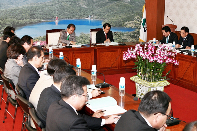 -성실하고 친절한 근무로 신뢰 받는 공직풍토조성, 복무기강 확립 등 당부 이석화 청양군수는 13일 오전 8시 군청 상황실에서 개최된 주간업무계획보고회에서 연말연시를 맞아 들뜬 분위기를 틈탄 공직기강 문란행위와 행정누수현상이 발생하지 않도록 공직자 근무기강을 확립 할 것을 지시했다. 특히, 최근 지역에서 발생한 불미스러운 사건으로 실추된 지역 이미지가 빠른 시일내에 회복될 수 있도록 공직자 모두가 솔선수범해 차분한 분위기에서 일일신우일신의 심정으로 연말연시를 보내 줄 것을 당부했다. 또한, 경북 안동에서 발생 추가 확산되고 있는 구제역이 유입되지 않도록 방역활동 및 비상근무에 최선을 다하고 불필요한 선진지 견학 등을 자제토록 하라고 말했다. 이외에 실과장과 읍면장이 중심이 되어 겨울철을 맞아 독거노인 및 어려운 이웃들이 소외되지 않도록 관심을 기울일 것과 주민불편 및 법질서 위반행위에 대해 적극적으로 대처하여 줄 것을 당부했다. 한편, 청양군은 행정지원과장 총괄로 3개 점검반을 편성 복무관련 법규위반 등 전반적인 복무실태를 연중 점검해 열심히 일하는 분위기를 조성 공직사회의 신뢰도를 제고해 나갈 계획이다. |