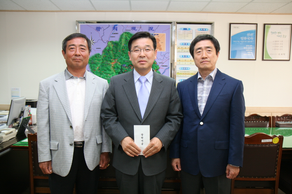 -정구옥ㆍ정구점 형제 장학금 1100만원 기탁 정구옥(청남면 대흥2리 이장), 정구점(청남면 명예면장) 형제가 청양사랑 인재육성 장학금으로 각각 1천만원과 1백만원을 기탁했다. 정구옥씨와 정구점씨는 지난 3일 부군수실에서 조경연 청양부군수에게 장학금을 전달하며 “청양 지역의 어린 꿈나무들이 큰 꿈과 희망을 펼칠 수 있다면 지역민의 한사람으로서 한없이 기쁘겠다 싶어 기탁을 하게 됐다”고 밝혔다. 정구옥씨는 이장으로서 평소 지역발전을 위해 물심양면으로 노력해오고 있으며 항상 웃어른을 공경해 주민들로부터 많은 존경을 받고 있다. 또한 동생인 정구점씨(정웅유통 대표)는 청남면 명예면장으로 봉사하며, 고향 노인분들을 위한 경로잔치를 열어 드리는 등 변함없는 마음으로 고향사랑을 실천해오고 있다. 특히 이들 형제는 청양을 아끼는 마음이 난형난제(難兄難弟)라고 지역에서는 평판이 자자하다. |