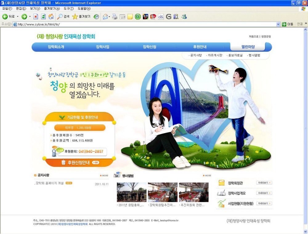 (재)청양사랑인재육성장학회 홈페이지 ‘문 열어’