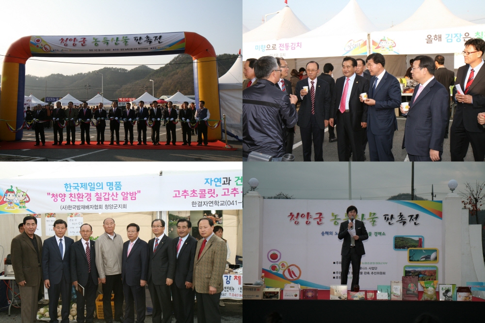 -볼거리, 먹거리, 즐길거리 풍성한 농특산물판촉전 성료 청양군이 대전에서 볼거리, 먹거리, 즐길거리 풍성한 농특산물 판촉전을 개최하고 도시민들을 오감만족시켰다. 대도시 청양군 농ㆍ특산물 판촉전은 청양군과 RIS사업단 주최로 지난 18일부터 20일까지 3일간 농협대전농수산물유통센터 주차장에서 청양 34개 업체가 참여한 가운데 성황리에 열렸다. 개막식에는 자매결연지 주민, 대전향우회 회원, 관내기관단체장이 참석해 자리를 빛냈으며 대전시민을 비롯해 인근 시군에서 많은 소비자들이 행사장을 찾았다. 고추랜드, 칠갑농산 등 30개 청양업체가 참여해 고추장, 된장, 맥문동 차, 잡곡 등 청양우수농특산물과 기업제품을 전시하고 시식 및 판매를 통해 청양의 우수한 맛을 널리 알리는 기회가 됐다. 또한 한결자연학교, 대치채소법인 등 4곳에서 체험장을 운영해 김치담그기, 쿠키 및 초콜릿 만들기, 가래떡구워먹기 등 고향의 향수가 물씬 풍기는 체험행사로 도시민들의 사랑을 한몸에 받았다. 특히 다채로운 행사로 축제 분위기를 연출했다. 방송인 송해씨의 진행으로 주말에는 노래자랑이 펼쳐졌으며 3일내내 농산물 깜짝경매, 행운권추첨 등 행사에 참석한 이들에게 행운의 선물도 선사했다. 이외에도 △매일 오전 11시 운영본부 앞에서 선착순으로 100명에게 구매액의 30%할인 판매 쿠폰을 지급하는 ‘줄을 서시오’ △청양농특산물을 홍보하는 품바공연 △막걸리 및 전통주 시음회 △게임존 운영 등 신명나는 이벤트로 인기를 얻었다. 이석화 청양군수는 “극심한 농산물 대란과 대형할인점 등 저가할인판매에 대처하고 우리 농산물의 안정성 홍보, 지속적인 직거래를 위해 대도시 농·특산물 판촉전을 계획했다”며 앞으로 차별화된 마케팅 전략을 세워 2012년에도 지속적인 농가소득 보전을 위한 계기를 마련하겠다고 의지를 밝혔다. |
