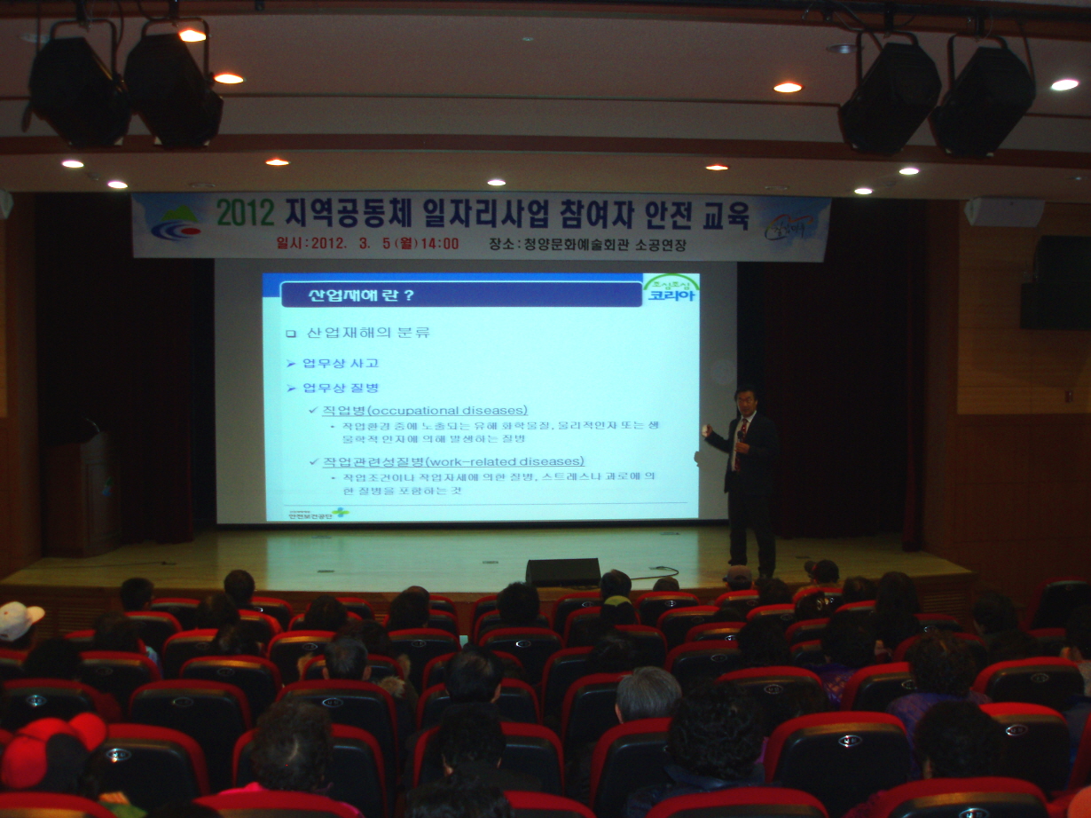 | 제목 | 2012 지역공동체 일자리 및 공공근로사업 참여자 안전교육 실시 | ||||