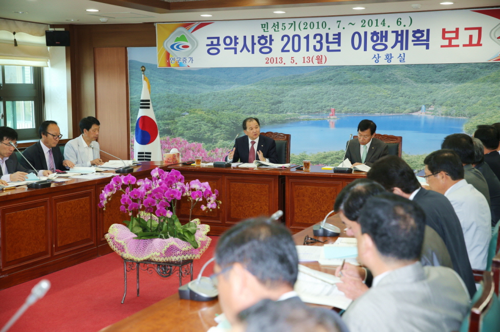 청양군은 지난 13일 실․과․단장 및 읍․면장, 주무담당이 참석한 확대간부회의 시간을 통해 ‘민선5기 공약사업 2013년 이행계획 보고회’를 가졌다.