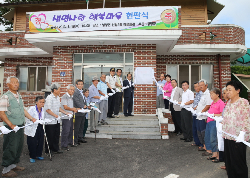 청양군보건의료원이 지난 18일과 19일 남양면 신왕2리 마을회관과 비봉면 강정리 마을회관에서 청양군수를 비롯한 관계 기관 단체장, 주민 등 90여명이 참석한 가운데 ‘생명사랑 행복마을 현판식’을 가졌다.