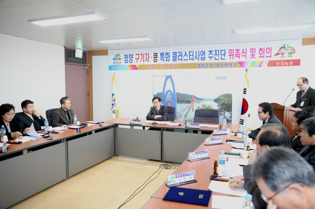 청양군이 제2기 균형발전사업을 본격 가동하고자 지난 14일 군청 영상회의실에서 청양구기자ㆍ콩 특화 클러스터사업 추진위원 위촉식과 회의를 개최했다.