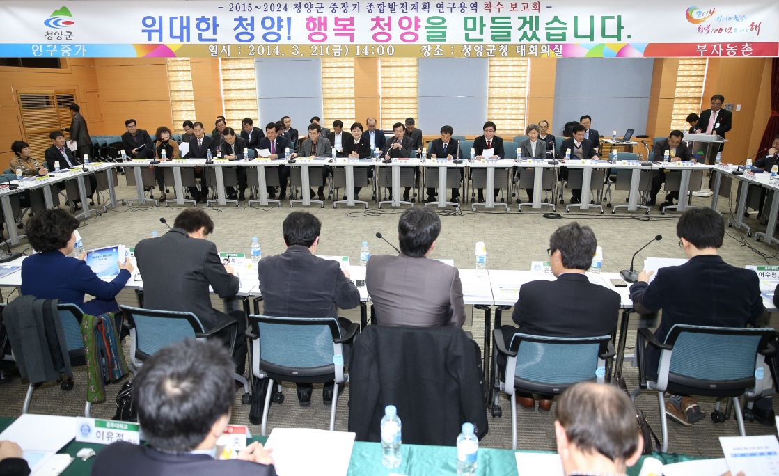 행복한 청양, 미래 100년을 힘차게 열어갈 2015∼2024 청양군 중장기 종합발전계획 수립 연구용역 착수 보고회가 지난 21일 군청 대회의실에서 개최됐다.