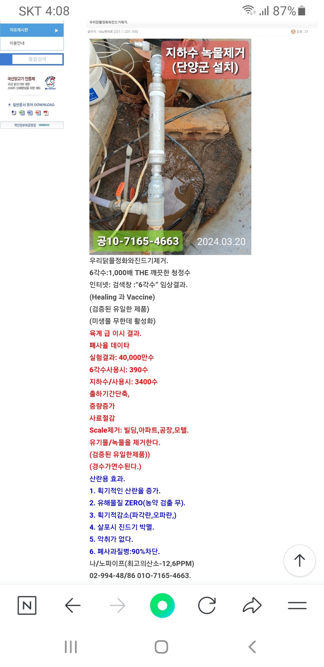 『 양계장뉴스 』글의 상세내용을 확인하는 표로 제목, 작성자, 등록일, 조회, 첨부, 내용으로 나뉘어 설명합니다.
