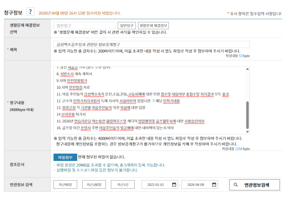 군청 군민의소리 게시판에 올린 글에 대해 해당담당자는 답변해 주시기 바랍니다.