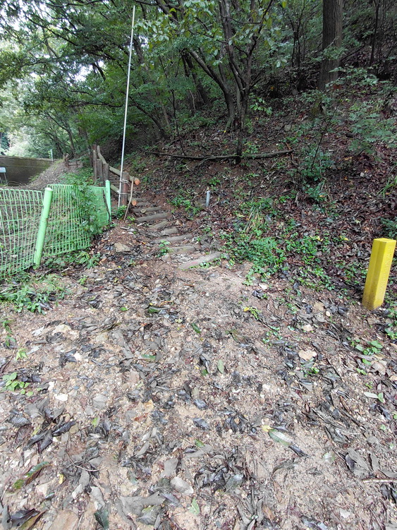 사방댐의 우측에 계단이 보입니다.