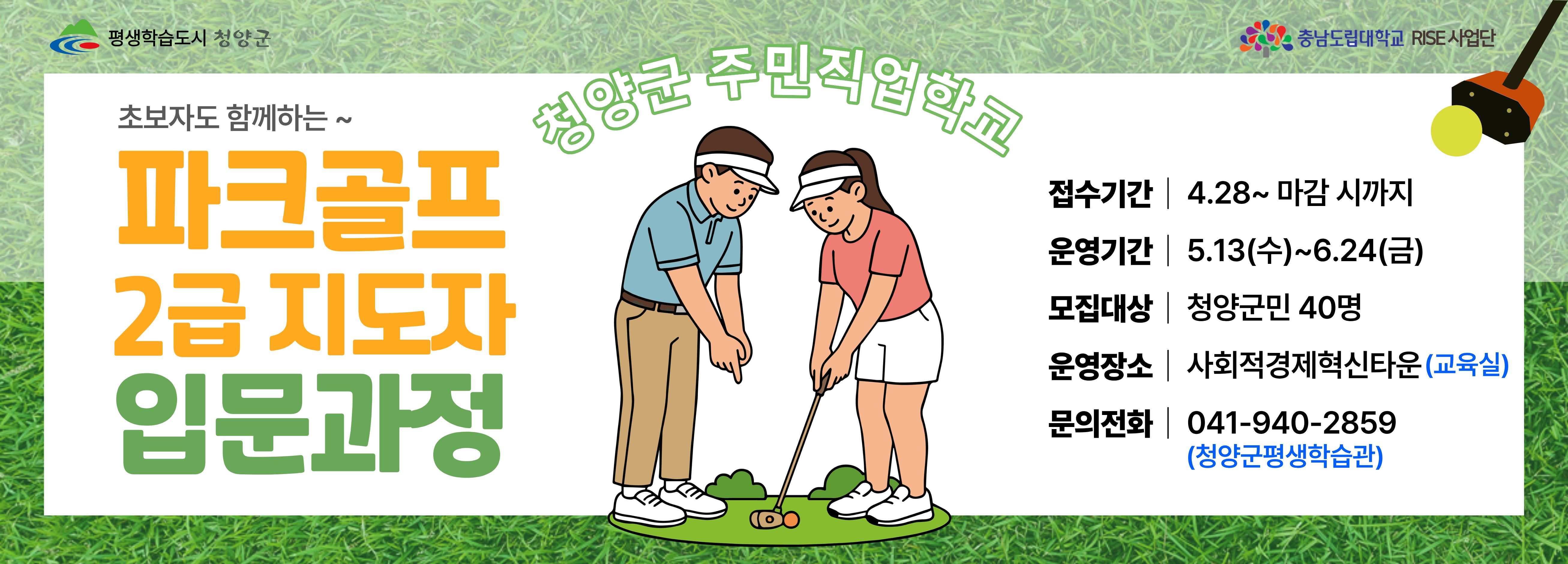 2026 청양군 주민직업학교 [파크골프 지도자 입문과정] 수강생 모집 안내